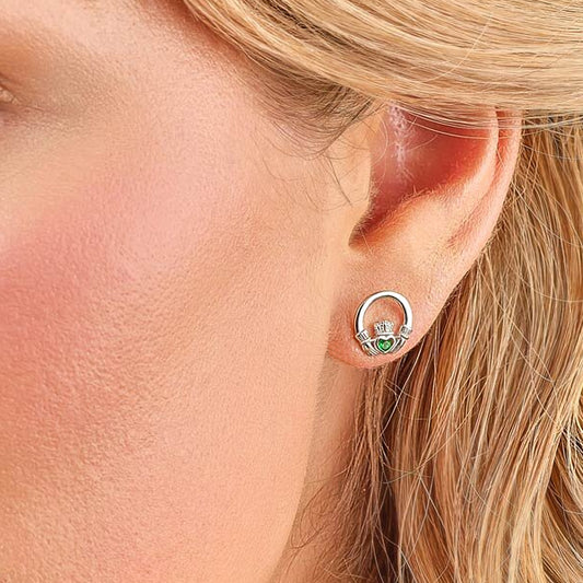 Sterling Silver Claddagh Ring w/ a Green Heart