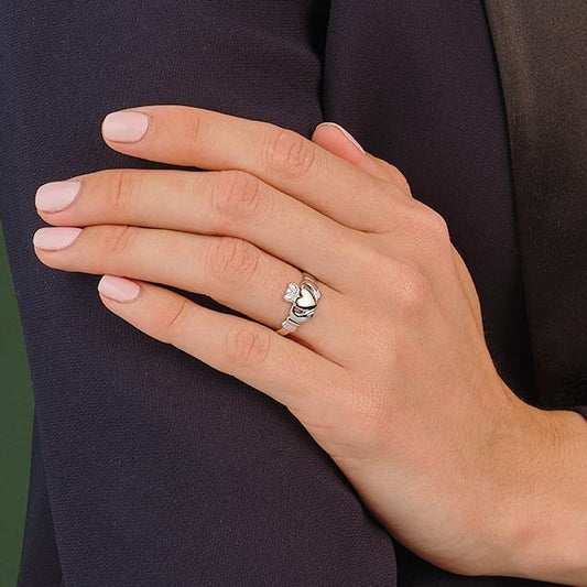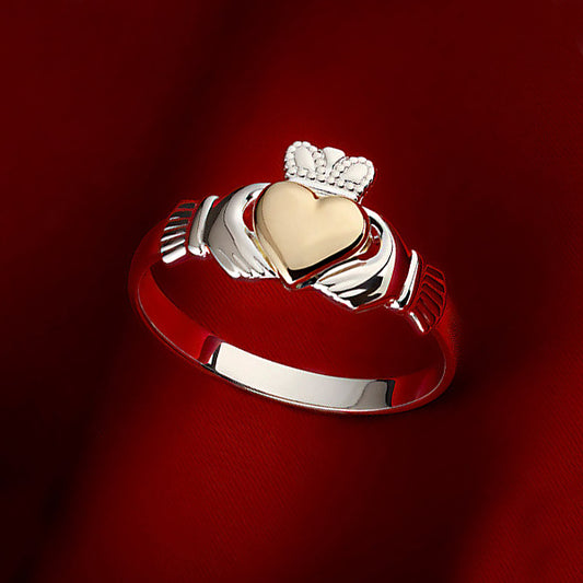The Claddagh symbol, which feature two hands holding a heart topped with a crown, symbolize love, loyalty, and friendship. Claddagh rings are frequently used as wedding bands, engagement rings, and as other significant life event gifts, making them cherished keepsakes that carry profound Irish heritage connection.