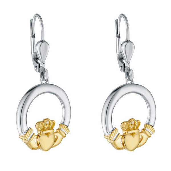 10k Gold, Sterling Silver and Diamond Claddagh Earrings
