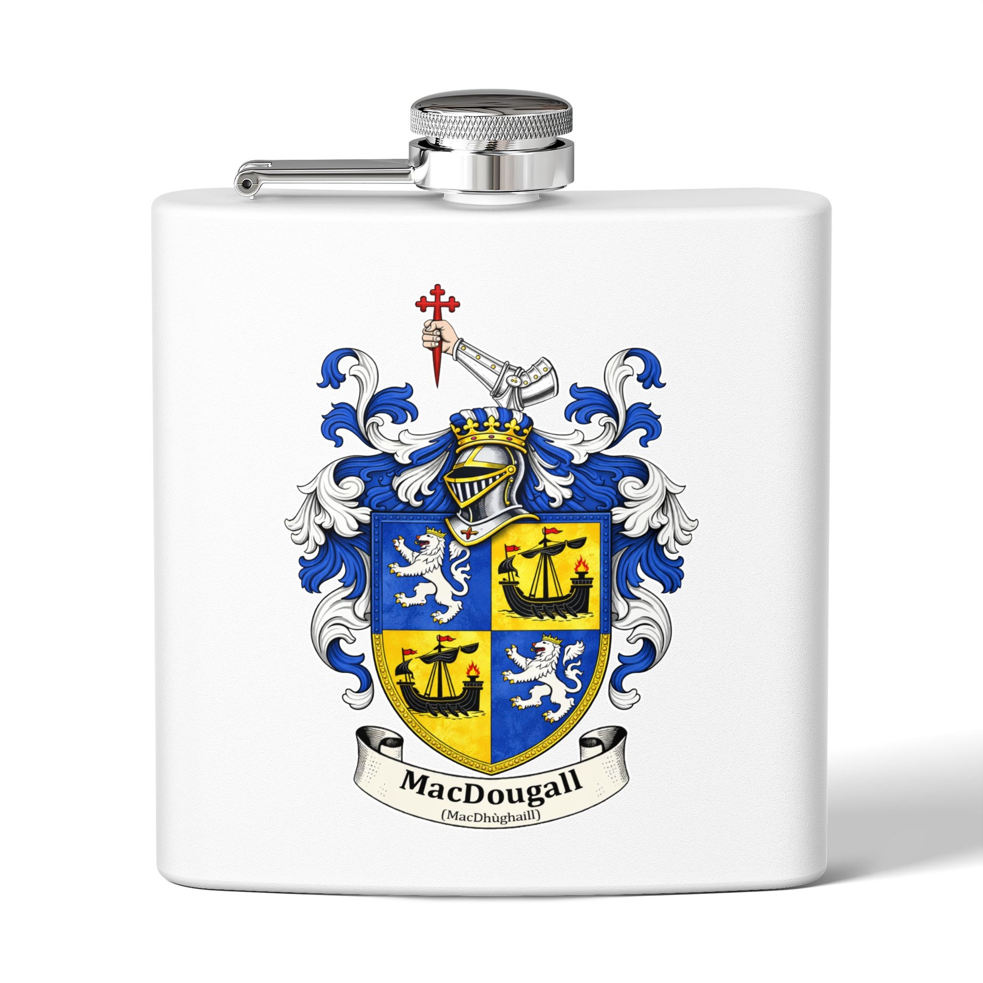 MacDougall Flask | Stainless Steel Hip Flask with Coat of Arms | Pocket Flasks